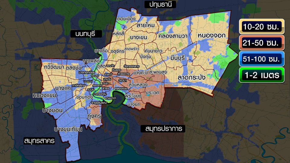 ระดับพื้นที่สูง-ต่ำ และพื้นที่เสี่ยงภัยน้ำท่วมในกรุงเทพฯ |